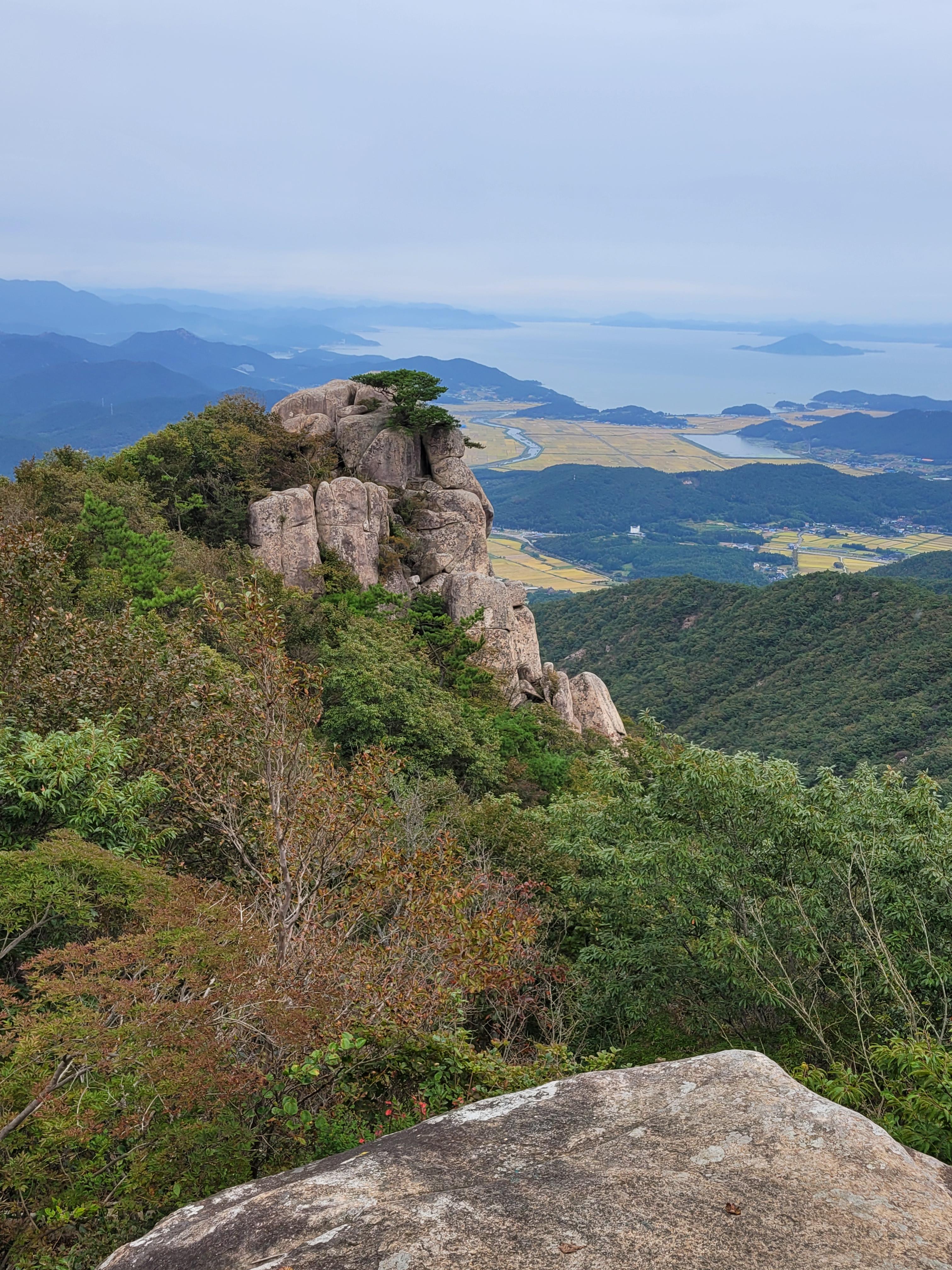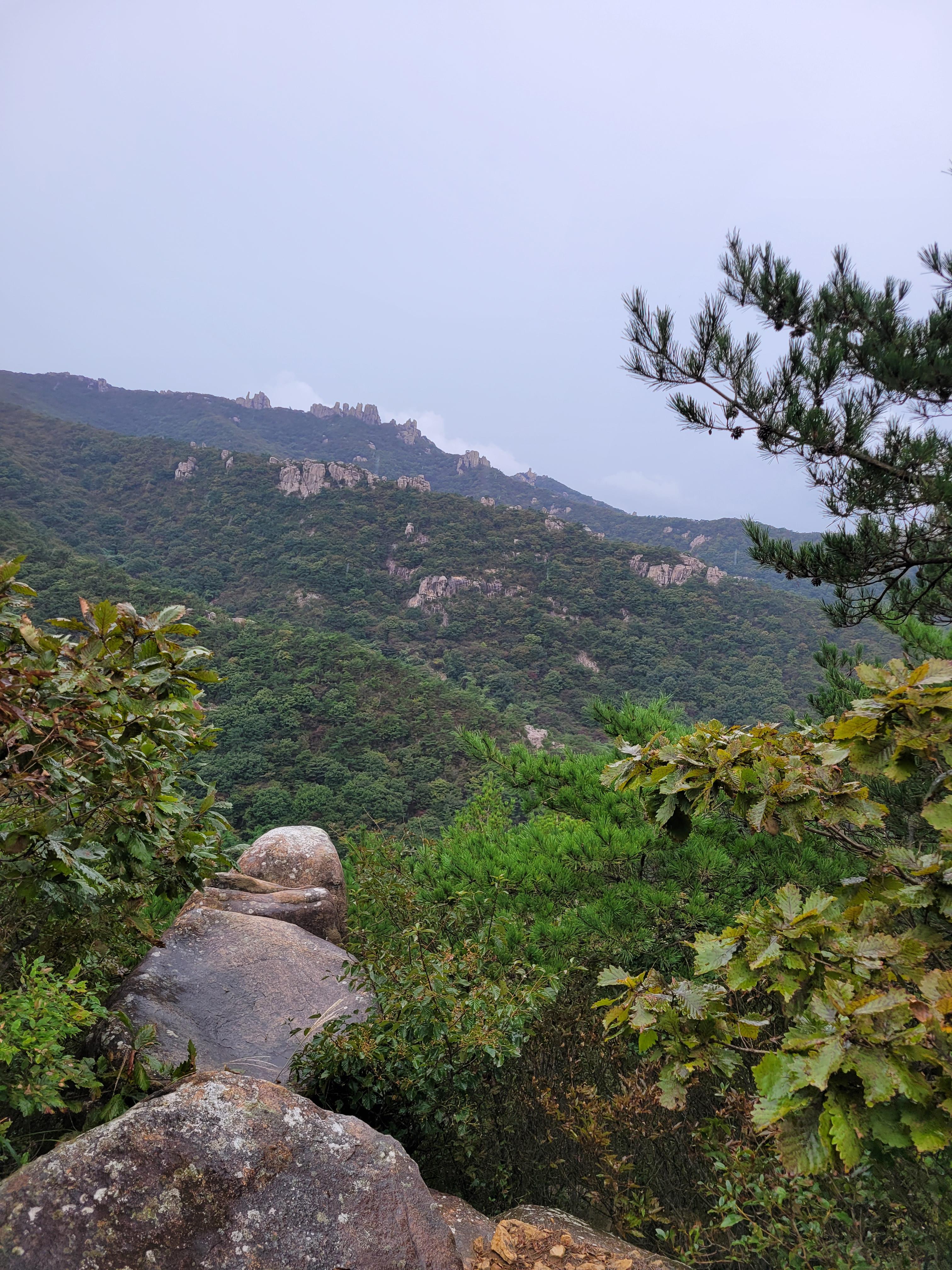 산은 예상했던 것보다 좀 더 가팔라 사람들이 힘들어했지만 그리 긴 코스가 아니어서 한 두시간 남짓 걸어서 정상에 도착할 수 있었다. 도중에 많은 기암 괴석 내지는 큰 돌무더기를 만났고 모두 이름이 있다. 밑에서 부터 중봉, 석선봉, 대세봉 대장봉. 중간에 금강굴이 있기는 한데 굴이라고 보기는 힘든 거였다.