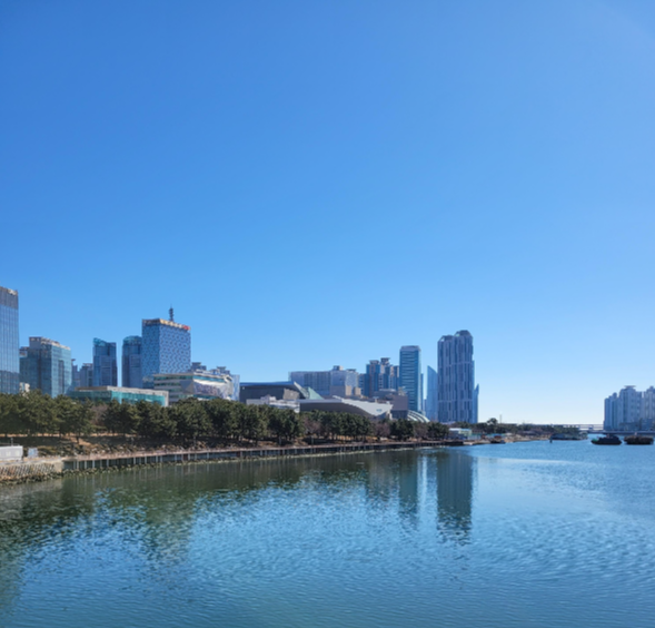 해운대 영화의 전당 못미쳐 다리를 건넜습니다. 양지 바른 쉼터에 모여 단체사진을 찍었더니 그늘진 곳에 선 사람만 얼굴이 잘 안나왔네요.
