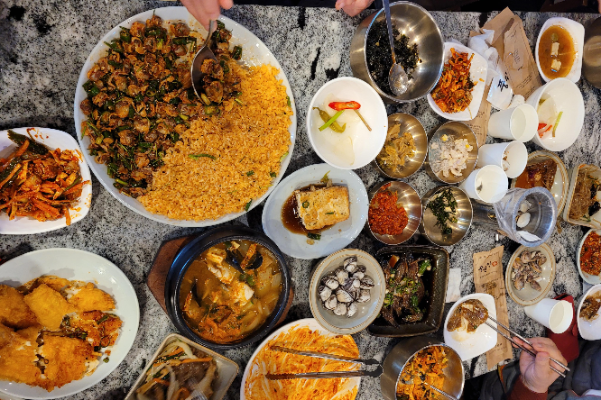 아이파크에 있는 풍원장 꼬막 정찬집인데 대기 손님이 좀 있군요. 일행 중 한 명이 추천한 집인데 지금이 한창 꼬막철이라 모두 맛있게 먹었습니다. 밑반찬이 충실하고 몇 가지 메인 요리급 음식 도 리필가능한 게 특히 좋았어요. 가격도 합리적이고요.