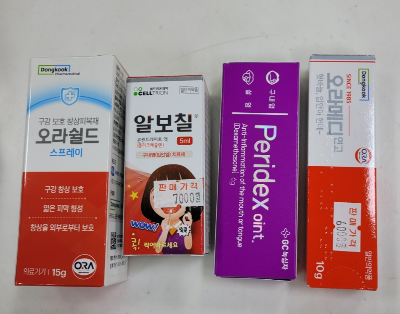 - 심한 통증을 동반한 염증: 오라메디, 페리덱스, 아프타치