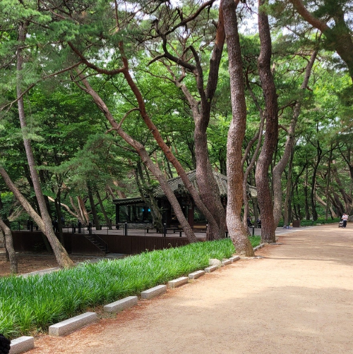 오늘은 휴일이라 사람들이 많이 나왔군요. 꼬마들이 꾸불꾸불 걷는 걸 마치 소나무들이 흉내내는 듯 보입니다.